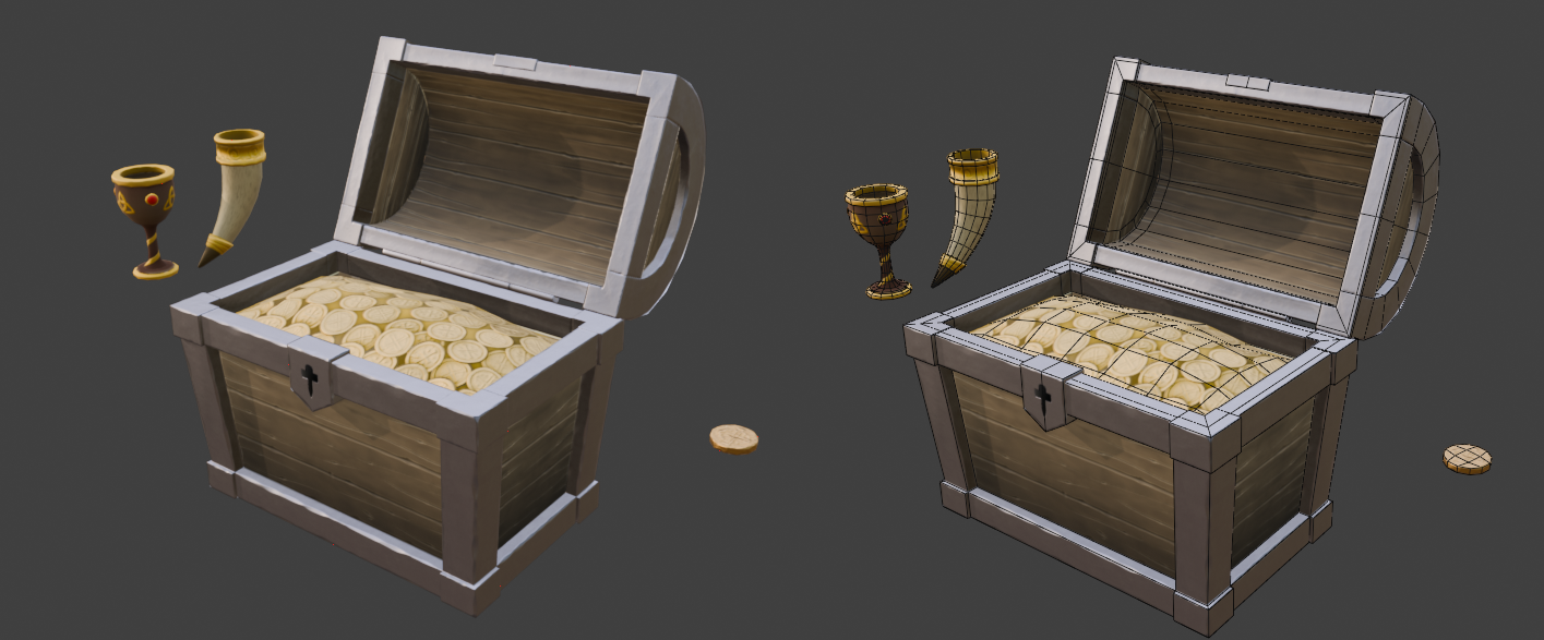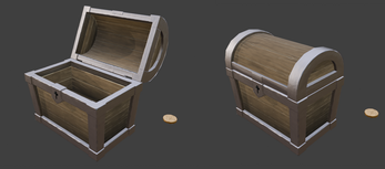 Includes a low-poly coin plane with baked textures to fill chests efficiently.