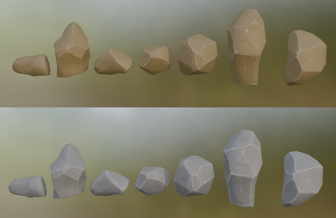 Stylized rocks in two color variations: gray and desert brown.