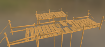 Wooden bridge and port: broken planks let characters fall through — perfect for old or abandoned scenes.